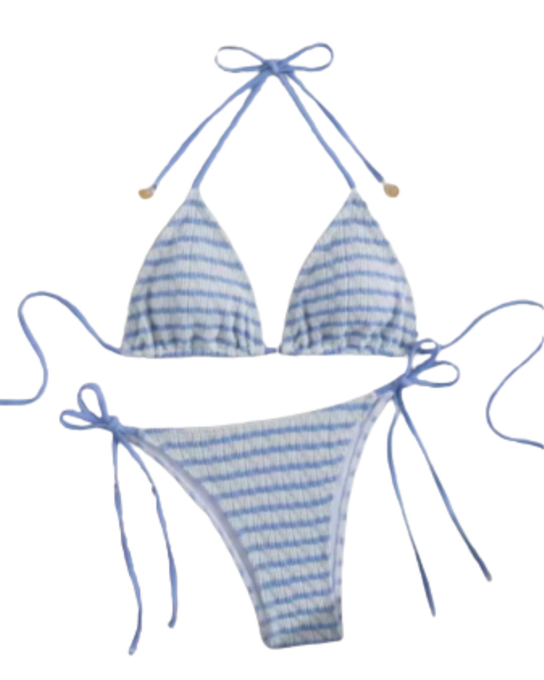 Top features a triangle shape with skinny string tie straps